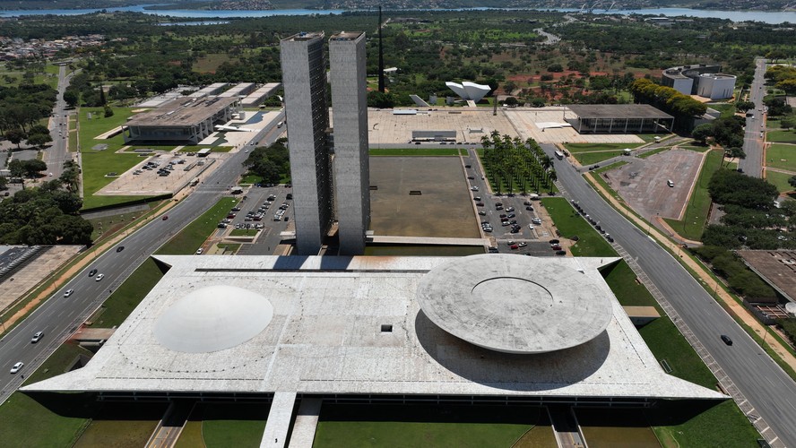 Vista aérea do Congresso Nacional. Ao fundo a Praça dos Três Poderes — Foto: Cristiano Mariz/Agência O Globo/27-12-2023