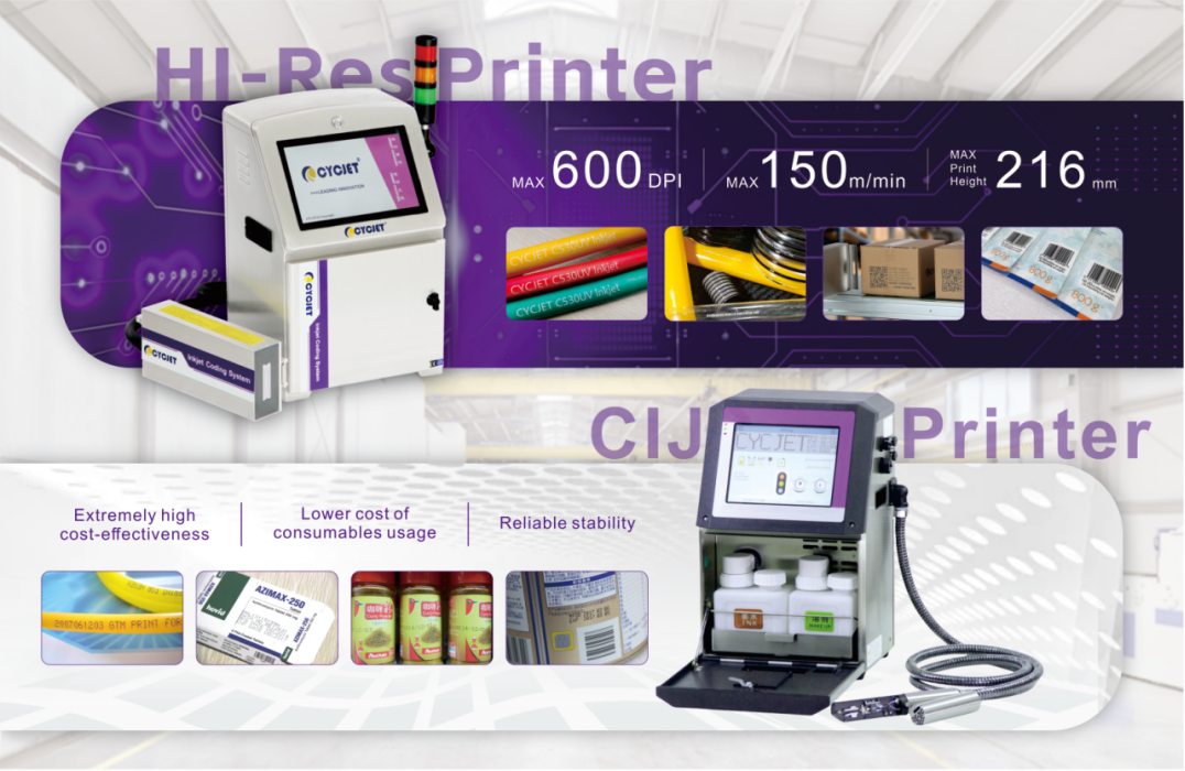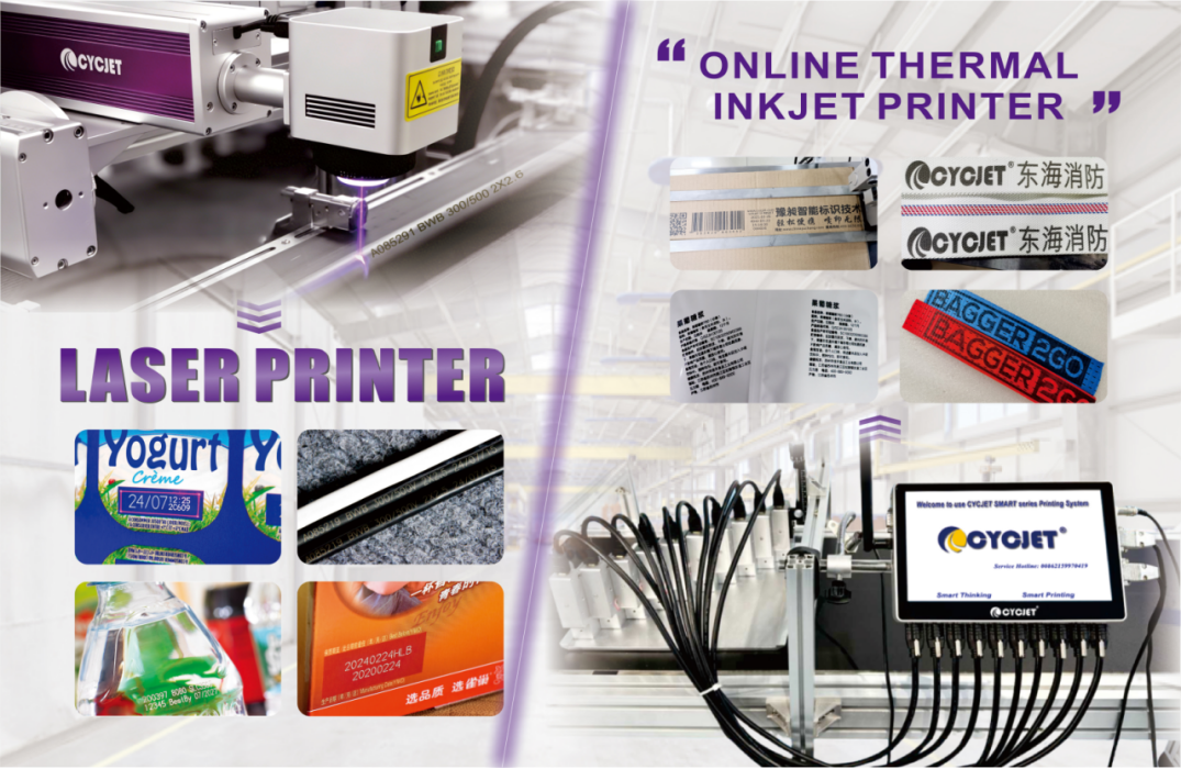 Principais vantagens: Em comparação com as principais marcas de impressão a jato de tinta em todo o mundo, a CYCJET é reconhecida por sua excelente relação custo-benefício, custos de consumíveis mais baixos e estabilidade confiável. Ela pode imprimir datas, números de lote, códigos de barras variáveis e outras informações em linhas de produção de alta velocidade, adaptando-se a vários materiais de superfície, como bens de consumo de alta rotatividade, fios e cabos, produtos alimentícios e tubos. É a opção mais clássica e amplamente utilizada em linhas de produção.