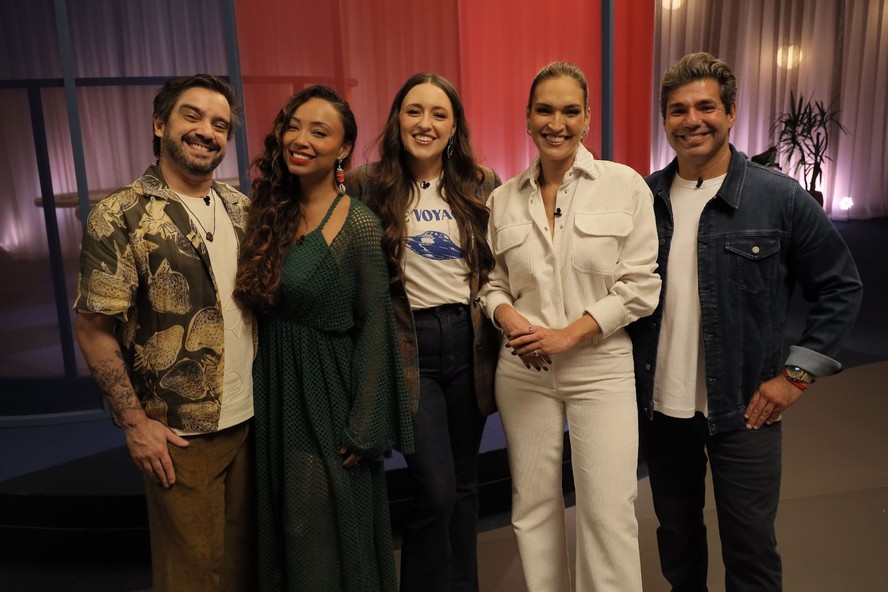 Lucas Corazza,Michele Crispim,Tábata Romero,Talitha Morete e Felipe Bronze — Foto: Divulgação/GNT